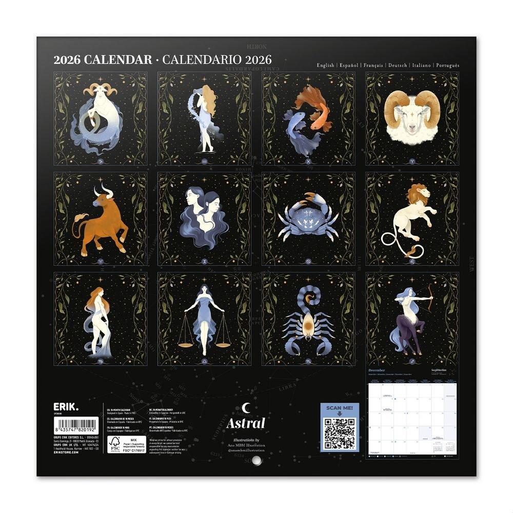 Calendario de pared de 12 meses (enero a diciembre) de Lunar de 2026