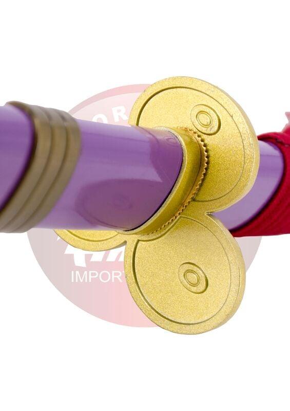Katana S5005PL Katana Enma de Zoro de One Piece réplica no oficial acabada en lila, de 103 cm hoja de acero acabada en negro con detalles en el corte amarillos y verdes, con vaina lila con detalles dorados y encordado rojo, mango lila con con detalles dorados.